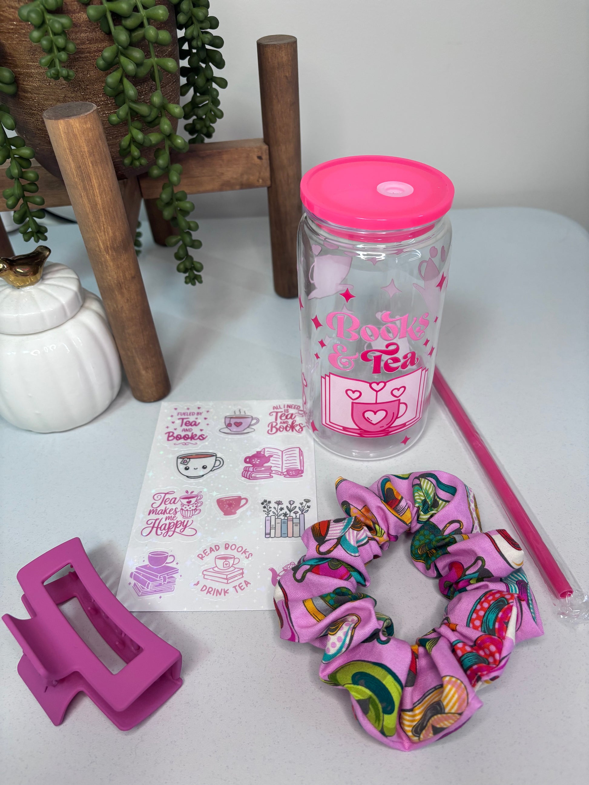 - 16oz acrylic libbey cup with hot pink lid and straw