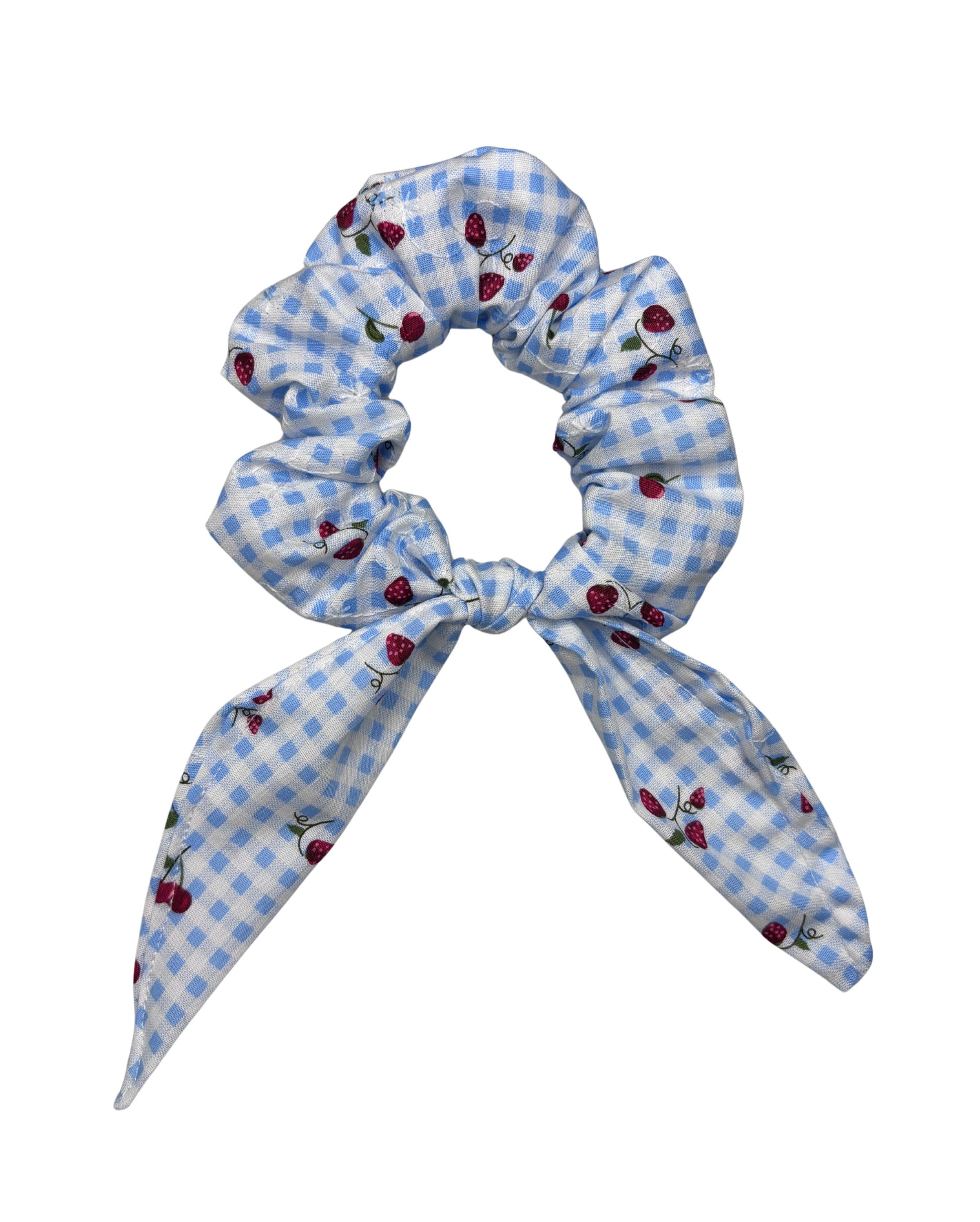 Similar in size to our regular scrunchies, except with an added bow detail for extra flair, our bow scrunchies are made with thin elastic, wrapping around hair 2-3 times (depending on hair thickness)