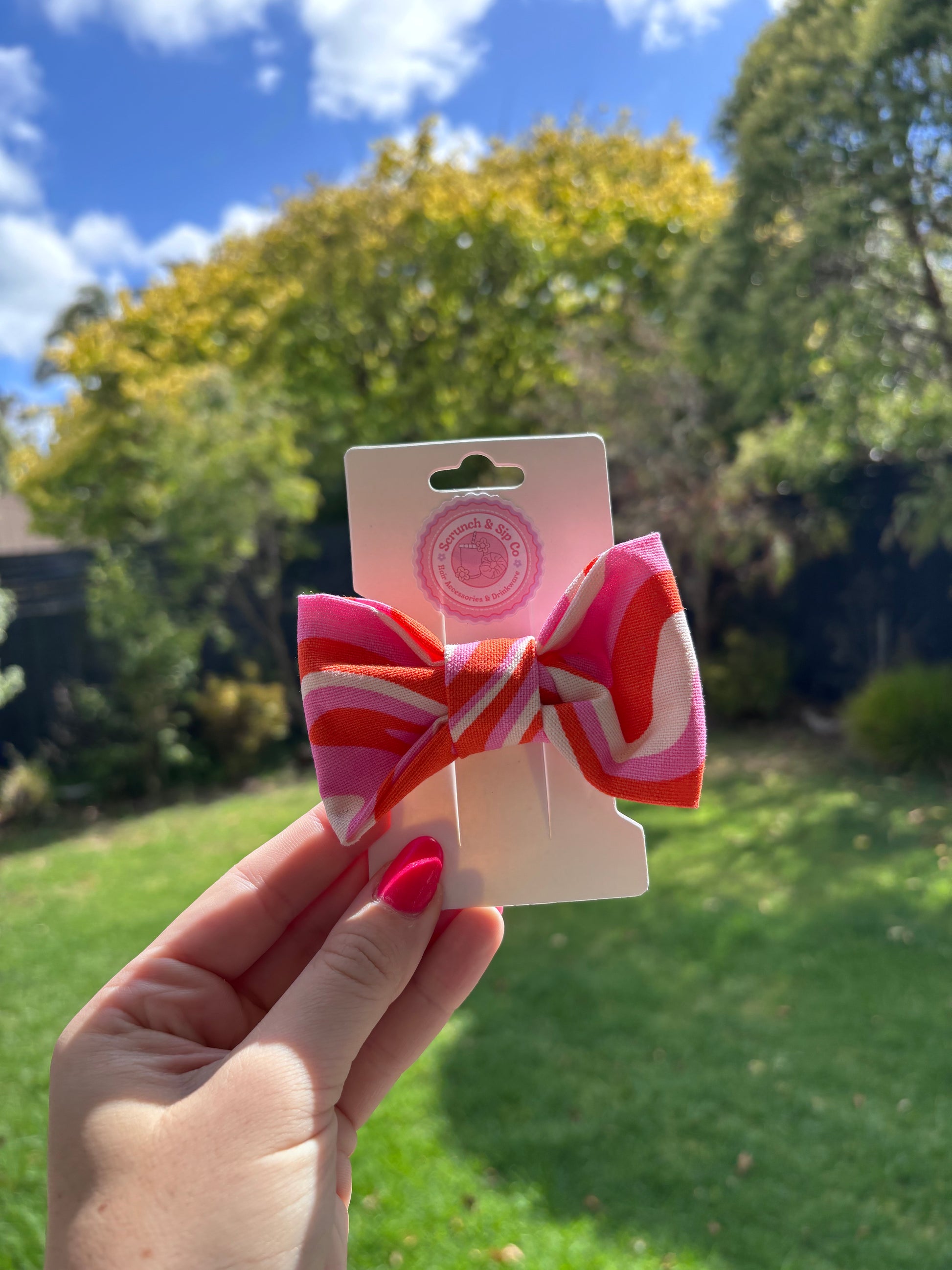 Our mini hair bows are ideal for everyday styling, whether clipped into loose hair, half-ups, or ponytails. Lightweight and comfortable for all-day wear, they’re perfect for adding a pop of personality to any outfit. Handmade with care, each mini bow is one of a kind and made to bring a little extra sweetness to your day.