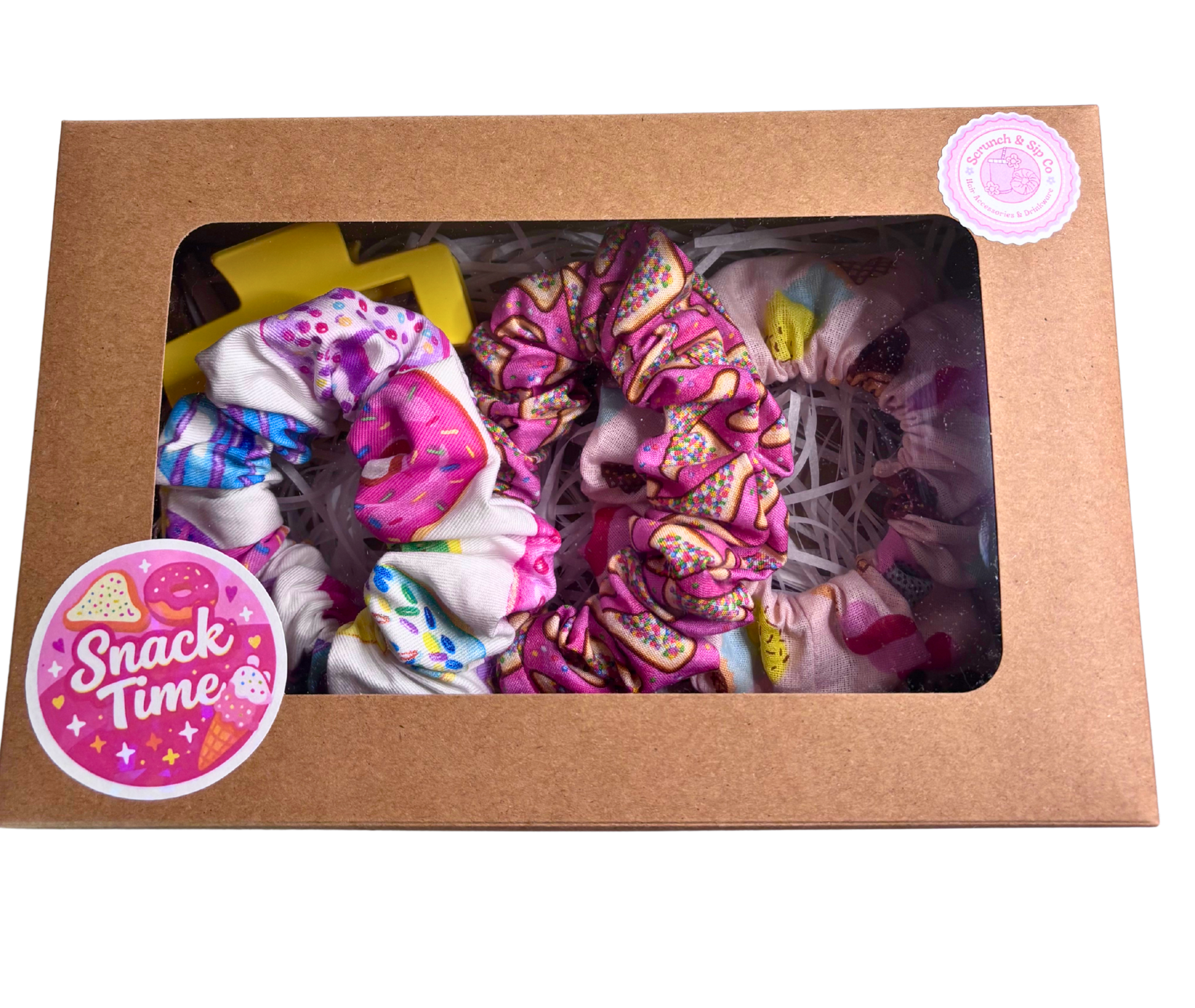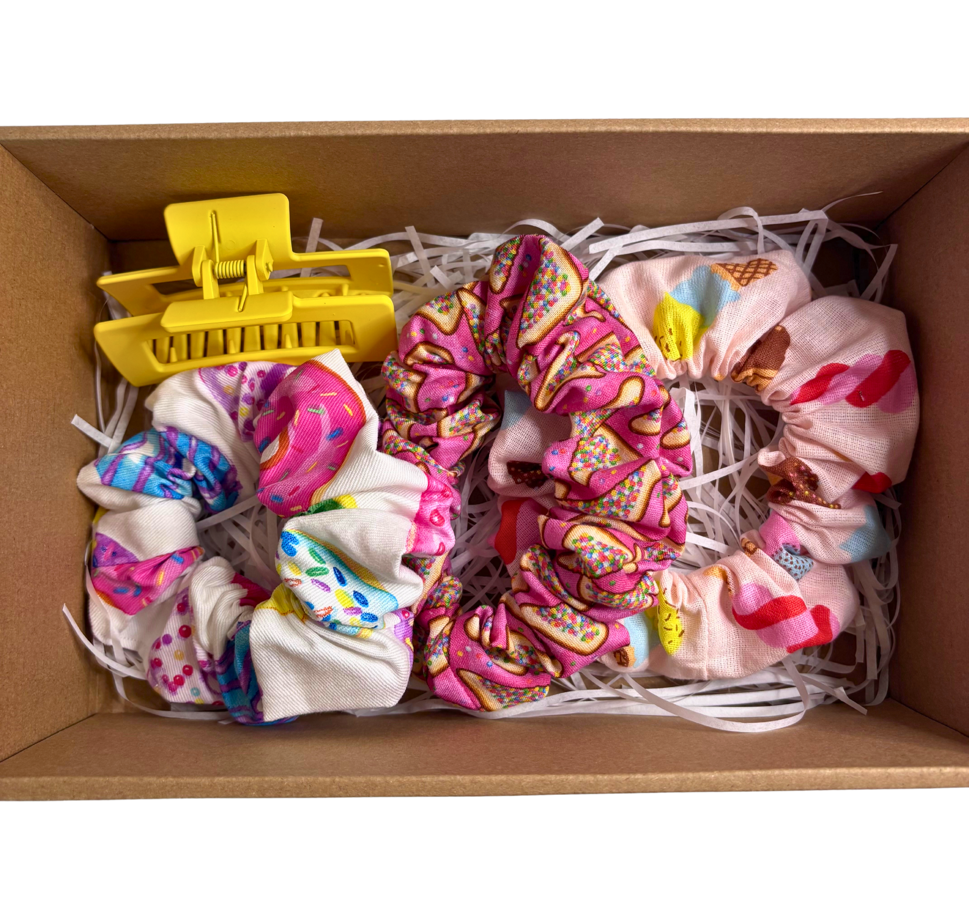 Our Scrunchie Gift Sets are the perfect option when youāre not quite sure what to buy. Each set includes a curated mix of three large scrunchies and a claw clip, thoughtfully paired together in a fun themed combination.