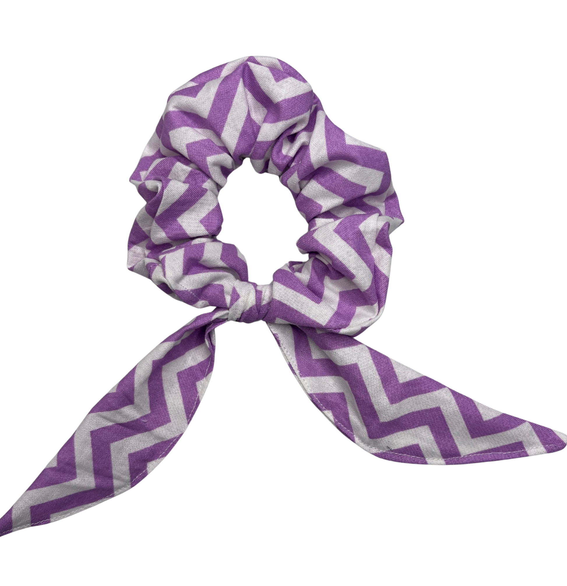 Similar in size to our regular scrunchies, except with an added bow detail for extra flair, our bow scrunchies are made with thin elastic, wrapping around hair 2-3 times (depending on hair thickness)